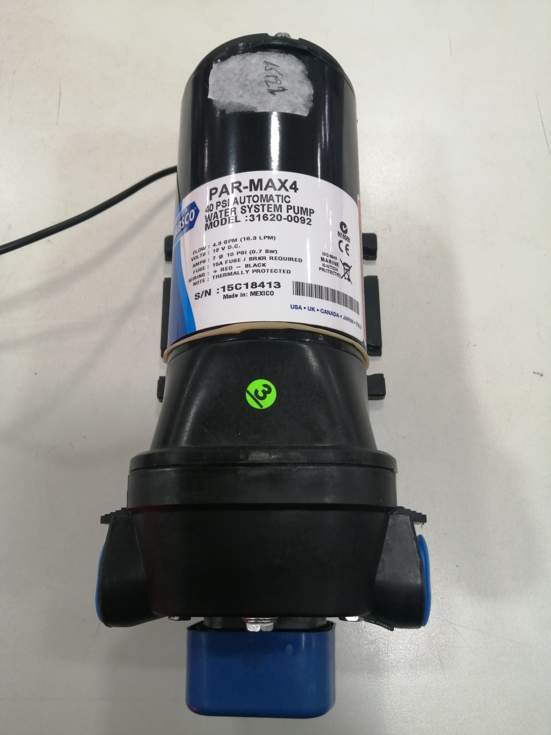 Jabsco parmax 4 de alta presión bomba de agua 12 V 4,5 GPM 20/40psi